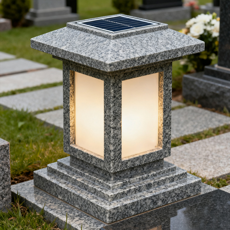The New Premium Solar Lantern Granite Lamp for Cemetery by Songjia is a modern, eco-friendly addition to cemetery memorials. Combining the timeless beauty of granite with the convenience of solar energy, this lamp provides sustainable illumination for grave sites. Designed for durability and aesthetic appeal, it serves as both a functional light source and a respectful tribute for those who have passed. Ideal for cemetery pathways, memorial plots, or family graves, it ensures lasting beauty while being energy-efficient and environmentally responsible.