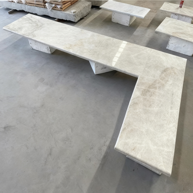 At Songjia, each Taj Mahal quartzite countertop is produced under strict quality control processes. The stones are carefully selected from reputable quarries and undergo CNC cutting for precision shaping. After cutting, the slabs are hand-finished to ensure a smooth and even surface. Polishing is done to enhance the stone’s natural beauty, with specific care given to the stone’s intricate veining and natural patterns.
