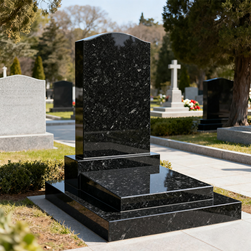 The Top Indian Black Granite Monuments are created using the finest Indian Black Granite, renowned for its deep black hue and fine grain. These memorials are designed for high-end cemeteries, memorial parks, and family burial plots. With precise CNC cutting, manual carving, and diamond polishing, each monument reflects a blend of elegance, durability, and artistic craftsmanship.